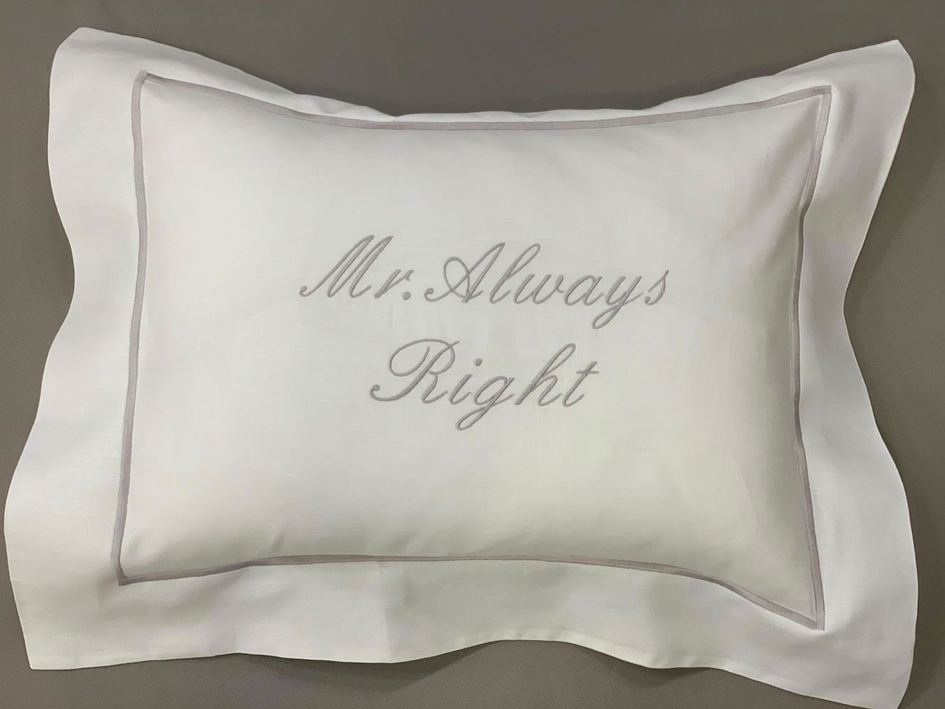 Μαξιλάρι λινό΄Mr Always Right’, 30cm x 40cm